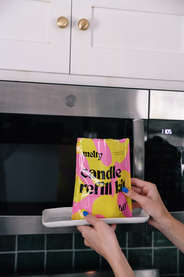 Melted wax will be hot. Do not allow contact with skin. Let cool before handling. Effing Candle Co. and themelty.co are not liable for any injury resulting from the mishandling of hot wax or bag. Microwave bag in a microwave-safe bowl; in the rare event that the bag is damaged in shipping a dish will catch any leaks.ย